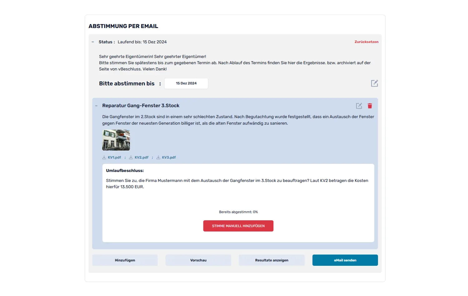 - Eigentümer erhalten eine eMail mit Abstimmungslink